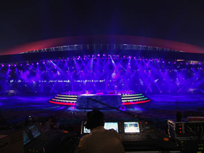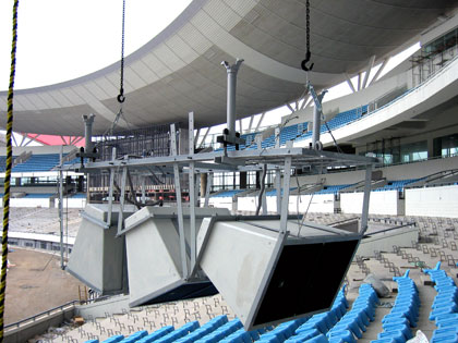 马道一变动对原来设计及音箱布置增加了困难,既要保证南京奥林匹克体育中心体育场内的音响语言清晰度的要求,又要满足如团体操和赛前、赛间播放音乐时对音质的要求,声扬不仅要覆盖观众席,也要覆盖足球场等比赛场地,这种条件下;
