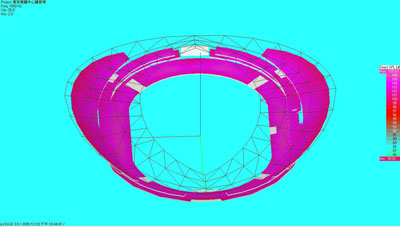 因摆放音箱位置困难,采用世界通用的最新电脑软件( EASE V4.1 )帮助,南京奥体中心体育场扩声系统采用三分频系统分布,在安排摆放位置和角度时,使用 EASE 电脑软件建模型计算、同时根据现场的现有条件下相配合。