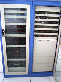南京奥体中心体育场扩声系统所采用设备全部是目前世界上具有先进可靠灵活性的音响系统工程设备,由于整套音响系统器材均选用目前世界著名品牌的器材:声艺调音台(Soundcraft K-2型32路)X 1台,皇冠功放(CROWN MA-1202)X 3台、(CROWN MA-3600)X 23台、(CROWN MA-5002)X 1台、(CRWON CTS-2000)X 1台、音箱(JBL PD-5212/95)X 58只(JBL PD-743)X 4只、(JBL PD-764)X 2只、(JBL PD-125)X 2只、(JBL AE系列AL-6125)X 4只、(JBL CONTROL-28T)X 54只、(JBL CONTROL-26T)X 32只,数码处理器(BSS-9088LL)X 4台,数码处理器内置(均衡器、分配器、分频器、矩阵器、压缩器、限幅器等等功能),双通道反馈器(SABINE FBX-2220),效果器(LEXICON MPX-550)X 1台、(LEXICON MPX-1)X 1台、MD机(TASCAM MD-350)X 2台,CD刻录机(TASCAM CC-222)X 2台,话筒分配器(BSS MSR-604II)X 2台及SABINE、LEXICON、SHURE等其他周边设备等……